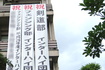 部活動の結果などを掲示するための懸垂幕・垂れ幕や、様々なスポーツの試合会場や学校等で選手チームを応援する為の横断幕、オープンキャンパスなどの学校行事告知のためのバナー幕など用途に合わせた加工が可能です。